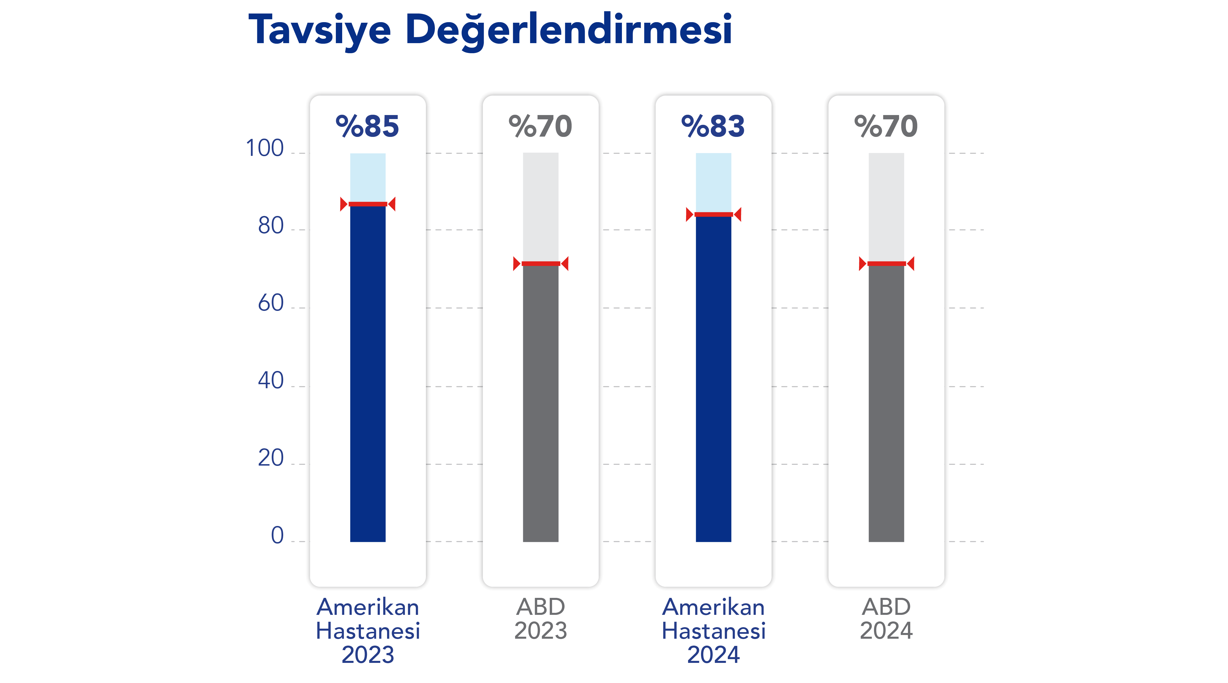 Amerikan Hastanesi'nin temel hedeflerinin merkezinde hasta memnuniyeti gelmektedir. Bir hasta yolculuğundaki her temas noktasını etkileme gücüne sahip olduğumuzun farkındayız. Hasta memnuniyetinde güvenli, yüksek kaliteli ve olağanüstü bakım merkezi sağlamak amacıyla ayaktan hasta deneyim anketimiz, deneyim ve memnuniyeti ölçümlemekte kullanılmaktadır.