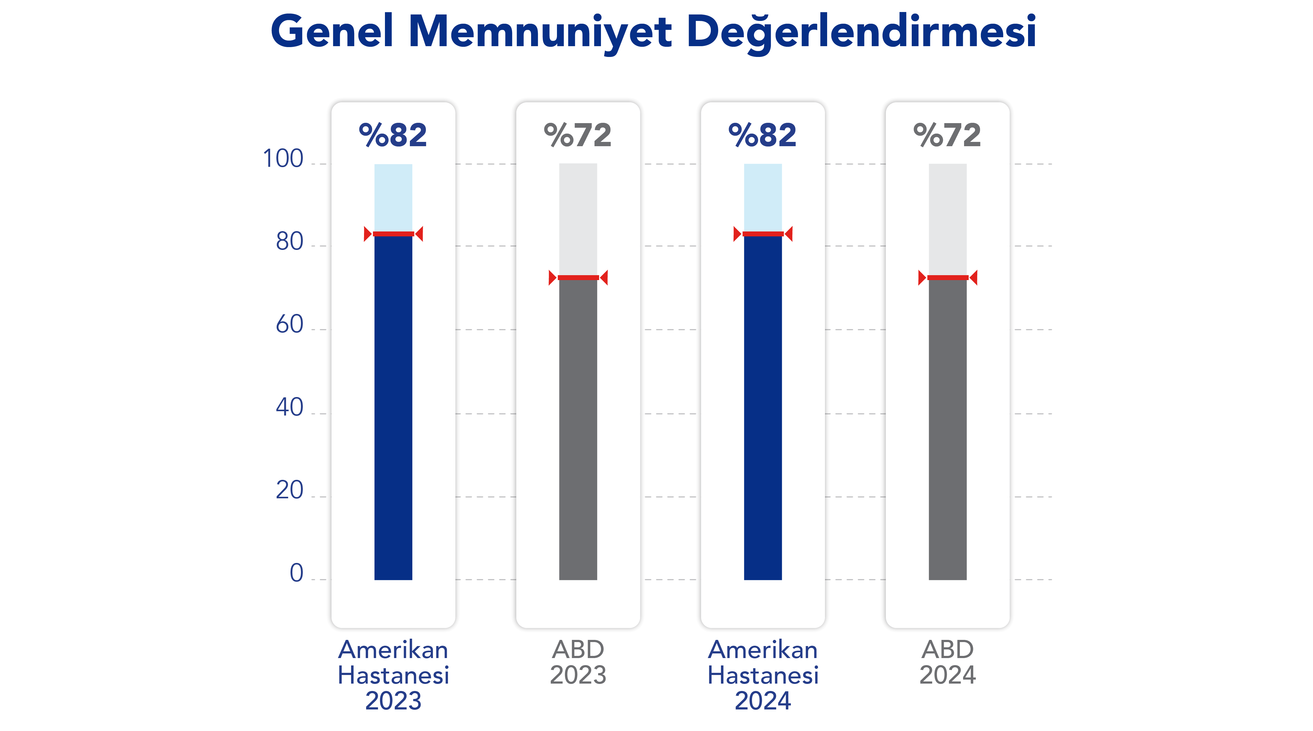 Amerikan Hastanesi’nin kalite göstergesinde kullanılan en önemli ölçüm aracı hastalarımızın memnuniyeti özelinde yaşadıkları deneyimlerin değerlendirmesinden oluşmaktadır. Kurumlarımızın kalite geliştirme sürecinde izlediğimiz göstergeler doğrultusunda temel hedefimiz memnuniyetin artırılması, hasta beklentilerinin ve gereksinimlerin karşılanmasıdır.